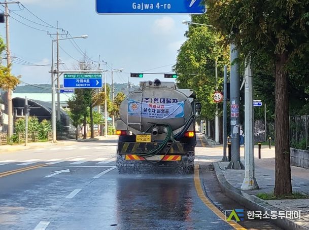 일산서구는 일 최고 체감온도가 33도 이상이 될 때 발효되는 폭염특보에 대처하기 위해 관내 중앙로 등 도심지역 주요도로에 16톤 살수차 2대를 운영하여 아스팔트 도로의 열을 식히고 주변 온도를 낮추어 도심의 열섬현상을 방지할 계획이다.