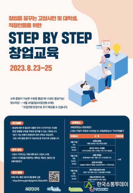 한국소통투데이 관리자 기자 | 고양산업진흥원이 28청춘창업소의 개방형 창업교육 프로그램 ‘STEP BY STEP’ 참가자를 오는 20일까지 모집한다.