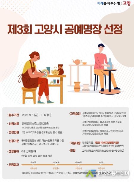 한국소통투데이 관리자 기자 | 고양특례시가 지역 전통공예의 계승과 발전을 위해 최고 숙련 기술자를 발굴하는 ‘제3회 고양시 공예명장’을 선정한다.