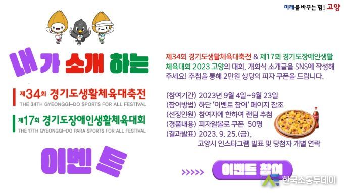 한국소통투데이 관리자 기자 | 고양특례시가 오는 15일 열리는 ’제34회 경기도생활체육대축전·제17회 경기도장애인생활체육대회‘의 개막을 앞두고 특색 있는 온라인 이벤트를 준비해 관람객 유치를 위한 막바지 홍보에 열을 올리고 있다.