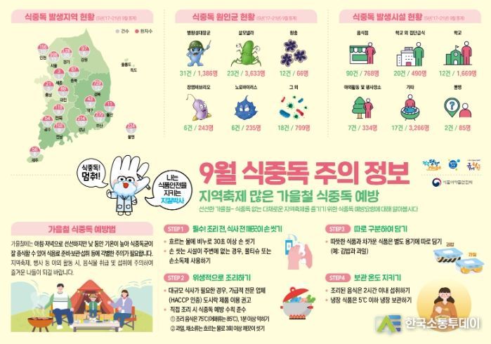 아침과 저녁이 시원한 9월부터는 식중독 예방 관리에 소홀해지기 쉽다. 하지만 낮에는 여전히 덥기 때문에 혹시 모를 식중독 발생에 주의가 필요하다.