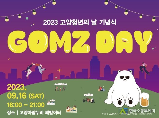 한국소통투데이 관리자 기자 | 고양특례시가 오는 16일 ‘청년의 날’을 맞아, 오후 4시부터 저녁 9시까지 아람누리 해받이터에서 청년의 날 행사 ‘곰즈데이(GOMZ DAY)’를 개최한다.