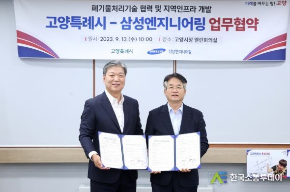 한국소통투데이 관리자 기자 | 고양특례시가 설비(플랜트) 분야에서 종합 해결책(솔루션)을 제공하는 전문기업인 삼성엔지니어링과 9월 13일 시청 열린시장실에서 업무협약을 체결했다.