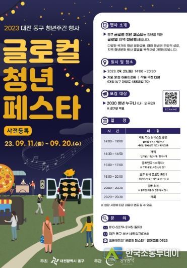 대전 동구는 청년들과 가오동 가오31호 어린이공원 일원에서 2023 대전 동구 청년주간 행사 ‘글로컬 청년 페스타’를 개최한다고 20일 밝혔다.