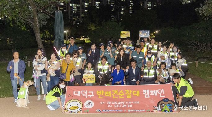 한국소통투데이 관리자 기자 | 대전 대덕구가 최근 발생한 흉기난동 등 이상동기 범죄로 인한 주민들의 불안감 해소를 위해 대덕구 반려견 순찰대 ‘덕구즈’와 대덕구, 대덕경찰서 합동으로 순찰 활동 및 펫티켓 준수 캠페인을 진행했다.