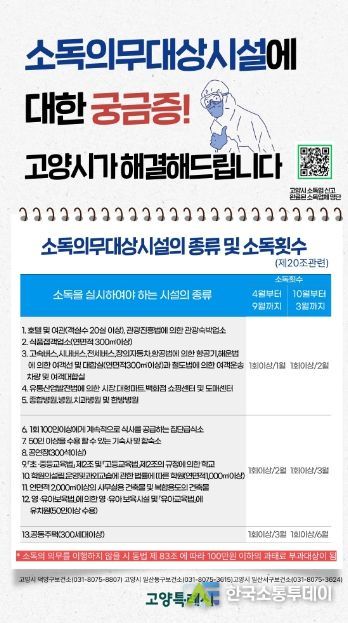 보건소 관계자는 “코로나19가 하향된 단계에서 바이러스 확산 위험성이 높아진 만큼, 고양시민의 안전을 위해 긴장감을 갖고 철저히 소독 점검을 실시하겠다”라고 말했다.