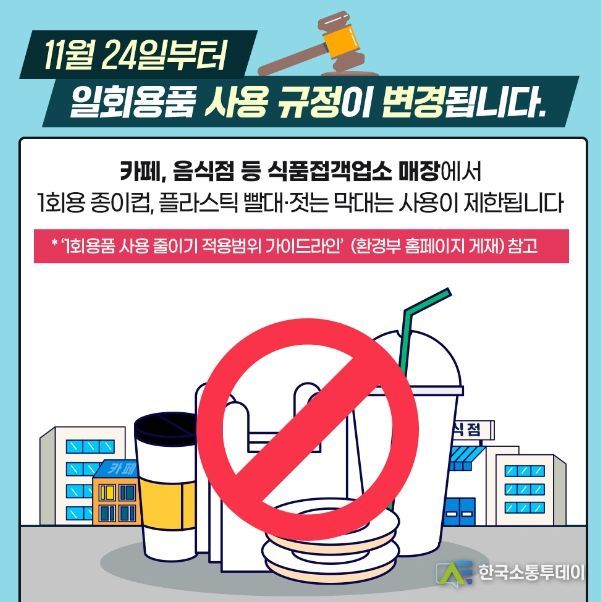 지난해 11월 '자원재활용법' 개정에 따라 업종별 일회용품 사용규제가 강화됐으나, 사업자와 소비자 등 일회용품 사용이 일상화된 상황에서 현장 부담을 줄이기 위해 시행 이후 1년간 참여형 계도기간으로 운영됐다.