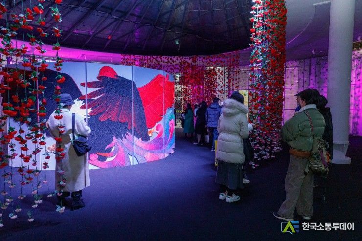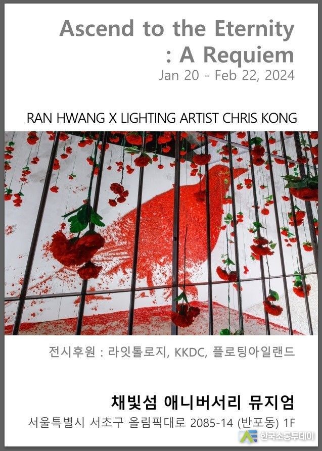 황란의 설치작품과 ‘라잇톨로지’의 라이팅 아티스트 크리스공과의 협업으로 빛과 어둠의 대비 그리고 오방컬러를 기반으로 한 스토리 연출을 통해 고요한 풍경에서 빛을 매개로 어둠을 뚫고 빛을 쏟아내는 과정을 희망적이고 미래적인 또다른 세상의 새로운 모습으로 승화시킨다.