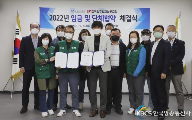 한국방송통신사 관리자 기자 | 광명도시공사는 10월 17일 '전국민주연합노동조합 광명지부'와 노사 교섭위원들이 참석한 가운데‘2022년도 임금 및 단체협약 체결식’을 개최했다고 밝혔다.