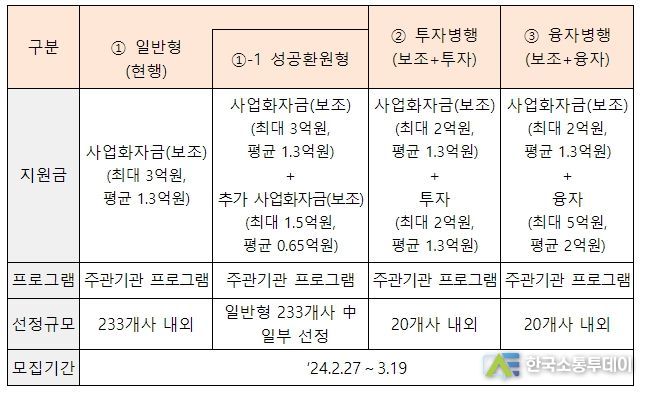 먼저, ‘성공환원형’은 사업화 성공 시 지원금의 일부를 환원하기로 약속한 기업에 대해 현행보다 50%를 추가 지원하는 방식이다. 기업당 지원금은 현행 최대 3억원에서 4억 5천만원, 평균 1억 3천만원에서 약 2억원으로 확대된다. 다만, 사업화 성공 시 추가지원금의 최대 50%를 5년에 걸쳐 회수한다.