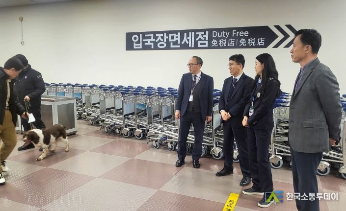한 국장은 해외에서 입국하는 여행자의 휴대품 및 신변에 대한 검사 과정을 직접 살펴보고, 현장 직원들이 겪는 애로사항을 청취했다.