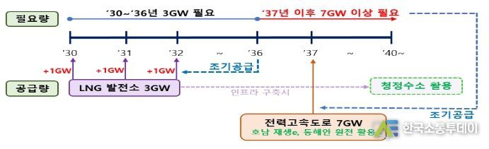 정부는 작년 12.21.(목) 「제4차 국가첨단전략산업위원회」에서 첨단전략산업 특화단지 전력공급계획을 심의한 바 있다. 동 계획에 따르면 산업부는 용인 반도체 특화단지에 ‘36년까지 액화천연가스(LNG)로 3GW, 나머지 7GW 이상은 ’37년 이후 서해안 초고압 직류망 등 장거리 송전선로를 통해 호남과 동해안의 발전력을 공급한다. 이를 위해 산업부는 「국가기간 전력망 확충 특별법」을 제정하여 전력망 적기건설을 위한 국가 지원체계를 도입하고, 관계기관 간 협력도 강화한다. 또한, 향후 첨단전략산업 특화단지 신규 선정 시 전력공급 여건 및 계획을 사전에 검토하는 체계를 확립하여 금년 상반기 바이오 특화단지 선정부터 적용할 계획이다.