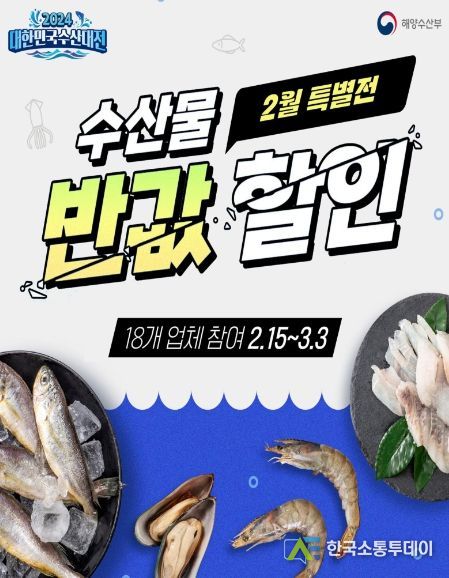 「대한민국 수산대전-2월 특별전」은 2월 15일부터 3월 3일까지 소비자들이 마트와 온라인몰에서 국산 수산식품을 구매할 때 구매 금액의 최대 50%(정부 20%+참여 업체 20~30%)를 할인 지원하는 행사이다. 이번 행사는 명태, 참조기, 고등어, 오징어, 마른 멸치 등 물가 관리 품목과 더불어 우럭, 바다장어 등 국산 수산물을 대상으로 진행하며, 행사기간 중 필요시 정부가 유통업체와 협력하여 자체 할인율을 상향하는 등 체감물가 완화를 위해 적극적으로 대응할 계획이다.