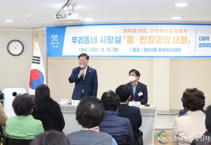 ‘시장이 찾아가는 우리 동네 반상회’에서는 탄소중립, 기후변화, 주민화합 등 사회변화를 선도하는 통장의 역량 강화 방안에 대한 의견을 나누고, 주민들의 쾌적한 생활환경 조성을 위한 사성공원의 장기적 발전 방향에 관하여 질문과 답변을 주고받으며 소통하는 시간을 가졌다.