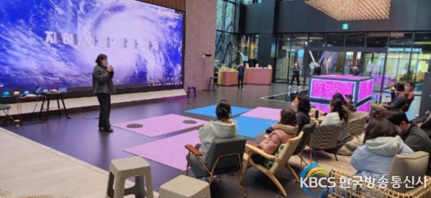 한국방송통신사 관리자 기자 | 광명시 광명형 넷제로에너지카페와 기후동아리 1.5℃기후의병은 지난 26일 광명시 일직동 어반브릭스 3층 아이벡스 스튜디오에 모여 광명넷제로 기후 다큐 ‘광명처럼 기후의병 1.5℃’ 상영회를 가졌다.