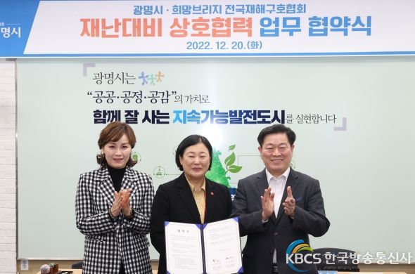 한국방송통신사 관리자 기자 | 광명시는 재난·재해 위험으로부터 시민을 보호하고 신속한 일상 회복을 지원하기 위해 20일 시청 중회의실에서 희망브리지 전국재해구호협회와 재난·재해 예방 및 구호 활동 협력을 위한 업무협약식을 체결했다.