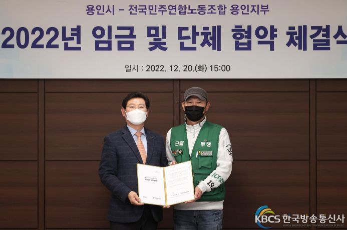 한국방송통신사 관리자 기자 | 용인특례시는 지난 20일 전국민주연합노동조합 용인지부(용인시 공무직노동조합)과 '2022년 임금 및 단체협약'을 체결했다.