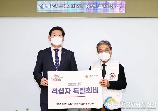한국방송통신사 관리자 기자 | 이상일 용인특례시장이 3일 시청 시장실에서 대한적십자사 경기도지사에 2023년도 적십자 특별회비 200만원을 전달했다.
