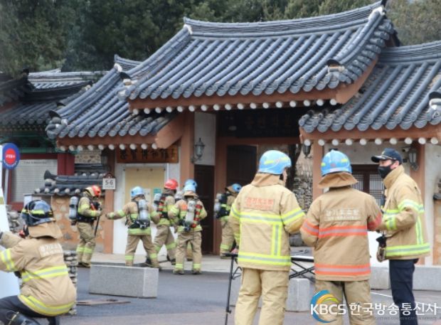 한국방송통신사 관리자 기자 | 광명소방서는 2008년 발생한 숭례문화재를 계기로 안전하게 문화재를 보존하고 국민의 안전관리 의식을 높이기 위해 매년 2월 10일로 지정된 ‘문화재 방재의 날’을 맞아 지난 10일 선비문화의 산실인 충현박물관(오리로 347번길)서 목조문화재 화재대응 훈련을 실시했다고 밝혔다.