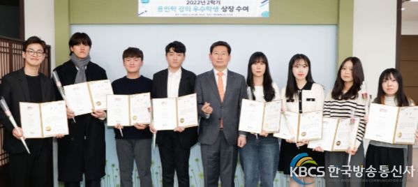 한국방송통신사 관리자 기자 | 이상일 용인특례시장은 20일 시장실에서 관내 대학 교양 과목으로 개설된 2022년 2학기 '용인학' 강좌를 수강한 우수 학생 9명에게 상장을 수여했다.