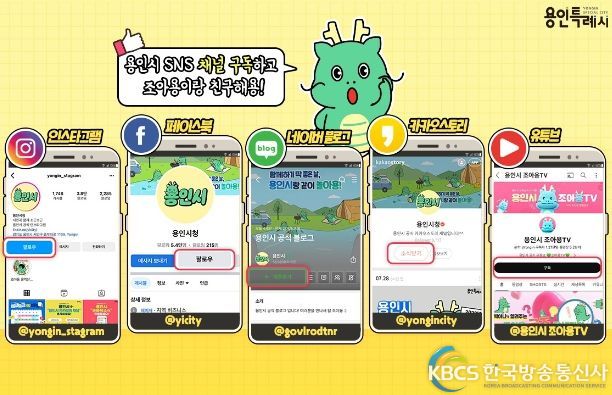 현재 용인특례시가 운영 중인 공식 SNS 채널은 총 5개다. 2023년 2월 기준 SNS 채널 팔로워는 페이스북(5만 4445명), 네이버 블로그(6만 163명), 인스타그램(4만 688명), 카카오톡 채널(20만 8583명), 카카오스토리(1만 205명), 유튜브(1만 2700명)에 달한다.