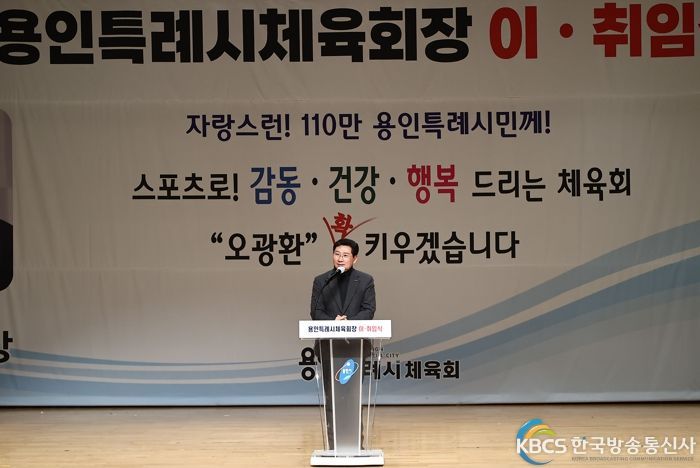 한국방송통신사 관리자 기자 | 용인특례시체육회는 25일 시청 에이스홀에서 민선 1기 조효상 회장 이임식과 민선 2기 오광환 회장의 취임식을 열었다.