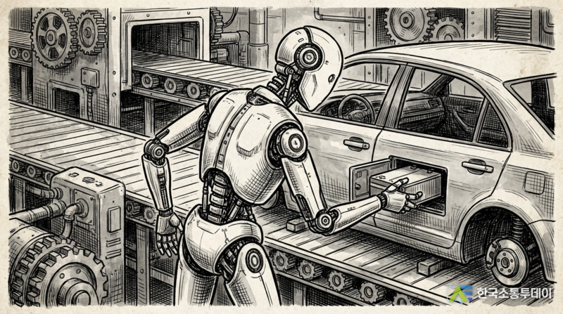 AI로봇은 사람처럼 몸을 비틀며 자동차 부품을 조립하고 스스로 배터리를 갈아 끼우고 마치 숙련된 사람 기술자처럼 사람 손 하나 안 거치고 스스로 알아서 일을 처리합니다.