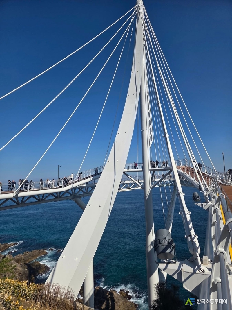 해수면으로부터 약 40m 높이에 설치된 스카이워크는 발아래로 투명한 유리 바닥이 펼쳐져 있어, 마치 바다 위를 공중 부양하는 듯한 아찔한 스릴을 선사한다. 특히 이날은 유난히 맑은 날씨 덕분에 수평선과 하늘의 경계가 모호할 정도로 투명한 삼척 바다의 정취가 극치에 달했다.