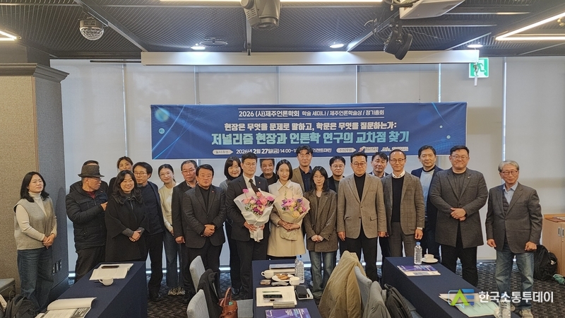 [한국소통투데이=김동현기자] (사)제주언론학회가 2026년 학술세미나와 제주언론학술상 시상식, 제11회 정기총회를 제주 호텔리젠트마린 블루오션홀에서 개최하며 언론의 사회적 책임과 미래 방향을 모색했다.