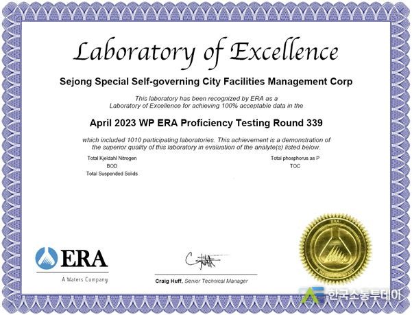 한국소통투데이 관리자 기자 | 세종특별자치시시설관리공단(이사장 조소연)은 공공하수도 관리대행업 시험・검사기관으로서 분석 결과의 신뢰성 제고를 위해 수질분야 분석능력을 검증하는 국제숙련도 평가를 실시했다고 밝혔다.