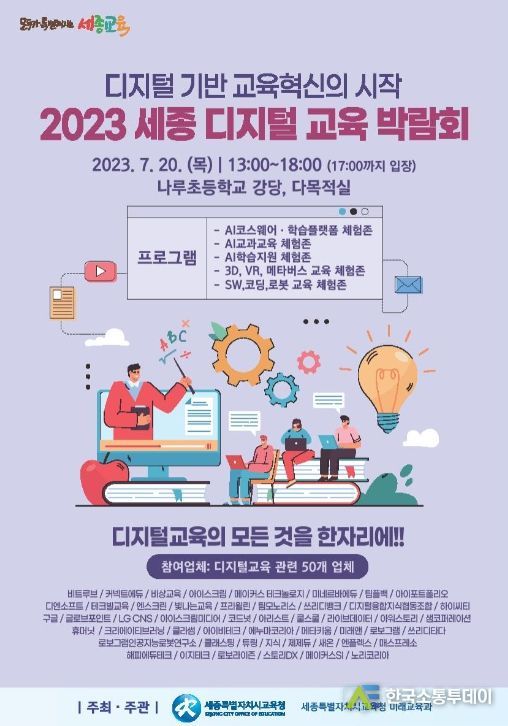 한국소통투데이 관리자 기자 | 세종특별자치시교육청은 7월 20일에 나루초등학교에서 ‘2023 세종 디지털 교육 박람회’를 개최한다.