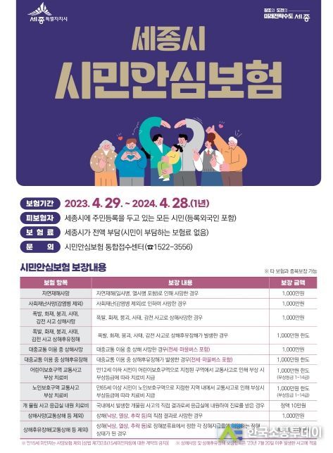 한국소통투데이 관리자 기자 | 세종특별자치시가 20일을 기점으로 기존 시민안심보험 보장항목을 개편한다.