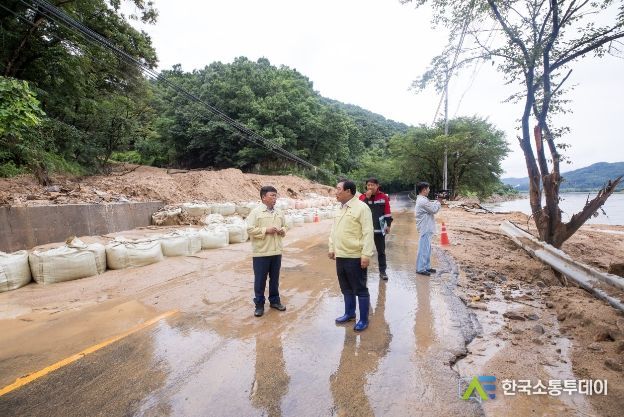 최민호 시장은 24일 최근 장기간 집중된 호우로 산사태 피해가 발생한 금남면 부용리 일원과 일부 시설이 유실된 연동면 미호강 체육시설에 대한 현장 점검을 실시했다.