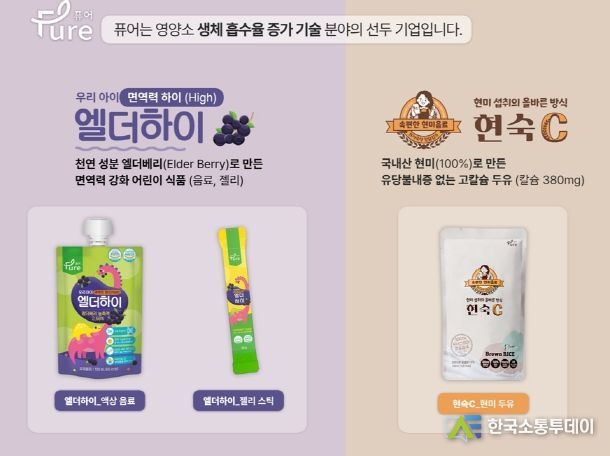 ㈜퓨어는 현미를 활용해 영양제의 체내 흡수를 돕는 가공 기술인 비엠시(BMC, Brown-rice Micro Coated)공법을 자체 개발했으며, 해당 공법을 활용한 기능성 원료를 식품·바이오·제약산업에 공급하고 있다.