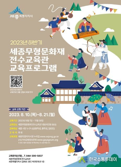 한국소통투데이 관리자 기자 | 세종특별자치시가 오는 10일부터 21일까지 ‘무형문화재 전수교육관 하반기 프로그램’ 수강생을 모집한다.
