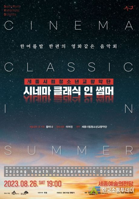 한국소통투데이 관리자 기자 | 세종시립청소년교향악단이 기획연주회 ‘시네마 클래식 인 썸머’를 여는 가운데 9일 오전10시부터 티켓예매를 시작한다.