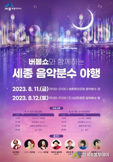 한국소통투데이 관리자 기자 | 한 여름밤, 무더위를 잠시나마 잊게 만들 문화공연과 음악분수가 세종시에서 펼쳐진다.