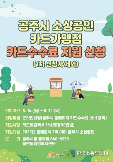 한국소통투데이 관리자 기자 | 공주시는 물가 상승 등 경영환경 변화로 어려움을 겪는 소상공인의 부담을 덜어 주기 위해 카드수수료를 지원한다고 16일 밝혔다.