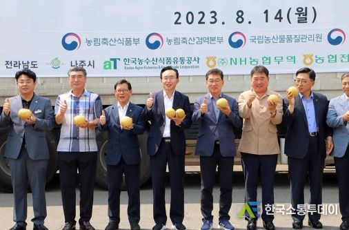 상차식에는 윤병태 시장과 신정훈 나주·화순 국회의원, 이상만 시의회의장, 김춘진 한국농수산식품유통공사aT, 이기복 농협전남지역 부본부장, 이동희 나주배원협조합장 등이 참석했다.