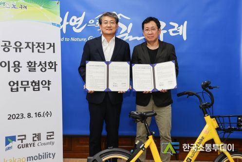 한국소통투데이 관리자 기자 | 전남 구례군은 16일 ㈜카카오모빌리티와 친환경 대중교통 수단 제공을 위한 공유자전거 운영 업무협약을 체결했다.