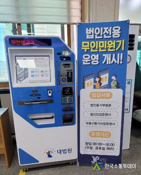 평일 오전 9시부터 오후 6시까지 운영 중인 법인 전용 무인발급기는 부동산등기부등본, 법인등기부등본, 법인인감증명서 총 3종의 민원서류를 발급받을 수 있다.