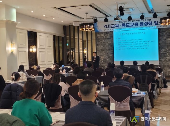 한국소통투데이 관리자 기자 | 충청북도교육청은 13일, 아모르아트 컨벤션에서 중등 역사 교사 100여 명을 대상으로 '역사교육 및 독도교육 활성화 워크숍'을 개최했다.