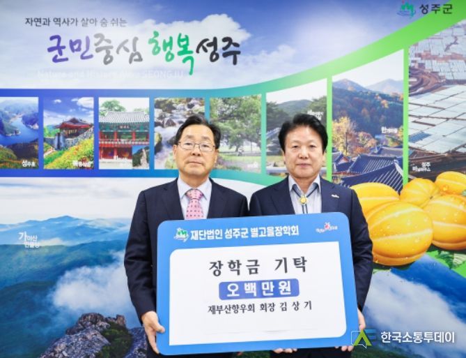 한국소통투데이 관리자 기자 | 14일 재부산성주향우회 김상기 회장이 5백만원을 (재)성주군별고을장학회에 지역 인재를 위한 장학금으로 기탁했다.