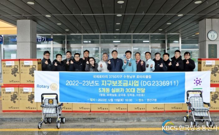 한국방송통신사 관리자 기자 | 수원시 권선구는 지난 15일 수원남부로타리클럽이 후원한 실버카 30대(450만원 상당)의 전달식을 가졌다. 올해 3월, 실버카 25대 후원에 이은 두 번째의 후원이다.