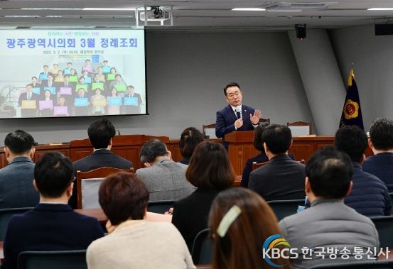 한국방송통신사 관리자 기자 | 광주광역시의회는 2일 의원과 사무처 직원 등 100여 명이 참석한 가운데 광주시의회 3월 정례조회를 개최했다.