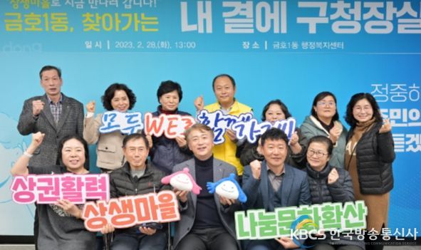 첫 번째 일정이었던 금호1동에서 김 청장은 직원들과 오찬 간담회를 시작으로 주민자치회·보장협의체·상가번영회·아파트협의회·자원봉사캠프지기·경로협의회 등 7개 마을단체와의 간담회를 이어갔다. 또한 직접 일일 친절매니저로 활동하며 민원인의 불편 사항과 직원들의 근무 여건을 살피고 행정서비스 질 향상을 위한 의견을 수렴했다. 이 밖에도 엠마우스일터 및 마을커뮤니티센터(품다) 방문, 금호1동 먹자골목 상가별 애로사항 청취 및 야외 소공연장 현장 실사, 상생마을 DJ파티 참석 등 이날 ‘내곁에 구청장실’일정이 주민들의 뜨거운 호응 속에 오후 9시까지 이어졌다.