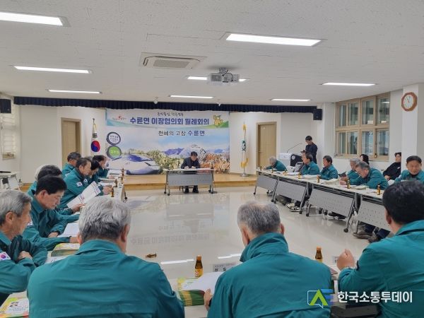 한국소통투데이 관리자 기자 | 성주군 수륜면은 지난 14일 행정복지센터 회의실에서 25개 마을이장 및 직원 등이 참석한 가운데 2월 이장회의를 개최했다.