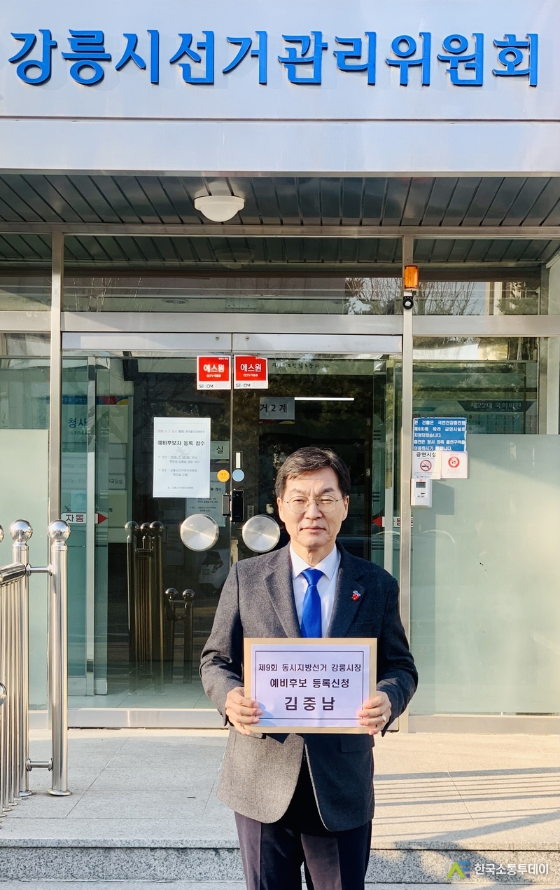 강릉의 미래를 새롭게 설계하겠다는 강한 의지가 강릉 시내 곳곳에 울려 퍼졌다. 김중남 전 더불어민주당 강릉지역위원장이 20일 오전 9시, 강릉시선거관리위원회에 제9회 전국동시지방선거 강릉시장 예비후보 등록을 마치고 본격적인 선거전에 돌입했다.
