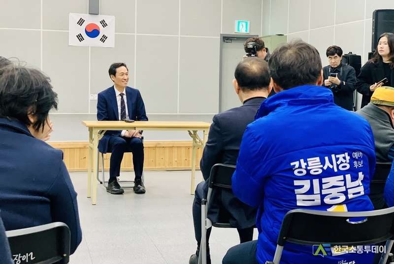 상인들의 손을 맞잡은 김 후보는 “지역 경제의 모세혈관인 전통시장과 골목경제가 살아야 강릉의 민생이 회복된다”며 청년이 머무는 도시, 일자리가 넘치는 도시를 만들겠다는 약속을 건넸다. 이어 주문진 수산시장과 어민시장을 찾아 어민들의 애로사항을 청취하고, 우 전 수석과 함께 강릉시 미래산업전략을 논의하는 비공개 시간도 가졌다.
