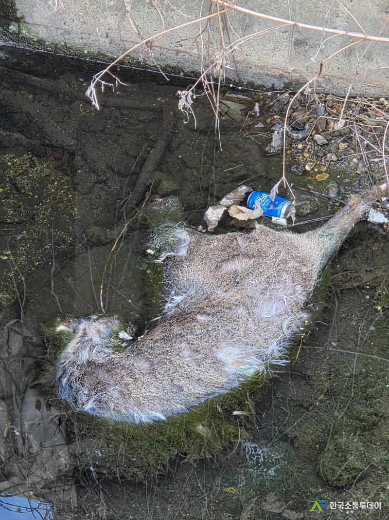 [한국소통투데이 정서광 기자 ] 경기도 용인시 기흥구 도로변 구거에서 야생동물 사체가 장기간 방치된 채 발견되면서 수질오염 의혹과 행정 관리 부실 논란이 확산되고 있다.